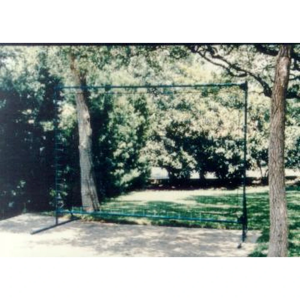 Net size is 7’x11’ stretched inside strong green steel tubular frame with solar resistant heavy bungee cords. Net backboards do not have the lively rebound of a fiberglass backboard but are absolutely quiet, less expensive and can be assembled in an hour. One stands closer to a net backboard due to absorbed rebound and therefore doesn’t require a sizable hitting area. Bakko’s research shows a 7’x11’ net size, stretched in a frame, perfectly fits most driveways or two fence post on a tennis court. Many tennis professionals will start beginners on a net backboard due to the snappy bounce off a fiberglass backboard. It can be too lively and frustrating to a small child. Even some experienced players prefer a net backboard. Excellent for repeated service practice from 39’. Net and elastic cords are replaceable. Popular for driveways, tennis courts or any open flat surface.