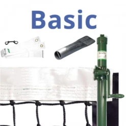 Constructed of schedule 40 galvanized steel with an electro statically applied enamel finish. Aluminum reel is equipped with ratchet guard for smooth and easy adjustment and includes removable handle. Comes with grooved post caps, a deadhead cleat, eye bolts for tying the bottom of the net, setting pins.